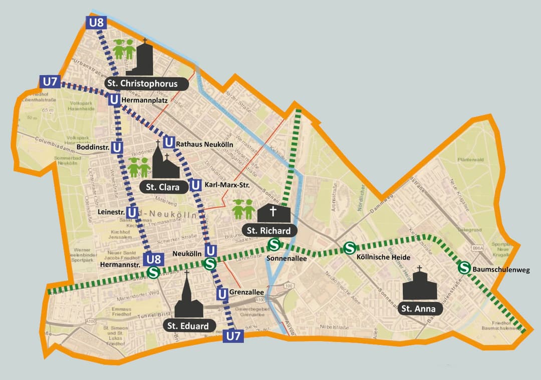 Seit 2006 machen sich die drei Gemeinden wie die drei Weisen aus dem Morgenland auf den Weg in eine gemeinsame Zukunft. Dabei steht das Biblische Leitwort „Mit meinem Gott überspringe ich Mauern“ (Ps 18,30b) im Vordergrund unseres pastoralen Handelns im bunten vielfältigen Nord-Neukölln, einem Stadtteil mit vielen kulturellen, spirituellen sowie sozialen Unterschieden, die es zu überwinden gilt. In einer großen Bevölkerungsdichte treffen ein starkes interreligiöses und ein religionsfernes Milieu aufeinander. Als Kirche bemühen wir uns um Antworten auf Nöte, Fragen und Sehnsüchte unserer Umgebung. Beim Gremientag 2023 entstand daraus der Leitsatz: „Ich habe Gedanken des Heils und nicht des Unheils: denn ich will euch eine Zukunft und eine Hoffnung geben.“ (nach Jer 29,11).